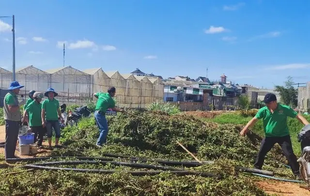 Còn tại khu vực An Sơn, P.4, Hội Nông dân TP.Đà Lạt triển khai thu gom phế phẩm các loại rau trên diện tích 3.000 m2 để ủ và xử lý thành phân hữu cơ phục vụ tái sản xuất đạt kết quả cao.